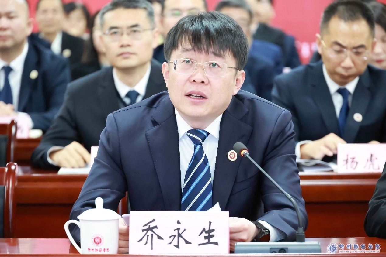 乔永生致辞。他代表全校师生向长期以来关心支持学校工作的各位专家和领导,致以最热烈的欢迎和最衷心的感谢。他表示,此次本科教育教学审核评估是我校关键历史发展阶段的一件大事,对未来发展至为关键、意义深远。学校自建校以来,始终坚定正确办学方向,坚持办好人民满意的教育,坚守师范教育主责主业,落实立德树人根本任务,夯实本科教育教学,抓实人才培养质量,致力于推动学科专业布局与国家、区域战略需求同频共振,促进教师队伍建设与人才培养质量协同跃升。希望通过专家组的高位指导与精准把脉,为学校教育教学质量建设与提升启发新思路、提出新举措。学校将以最诚恳的态度接受“综合体检”,将评估成果转化为育人实效与发展动能,为培养担当民族复兴大任的时代新人作出新的更大贡献。