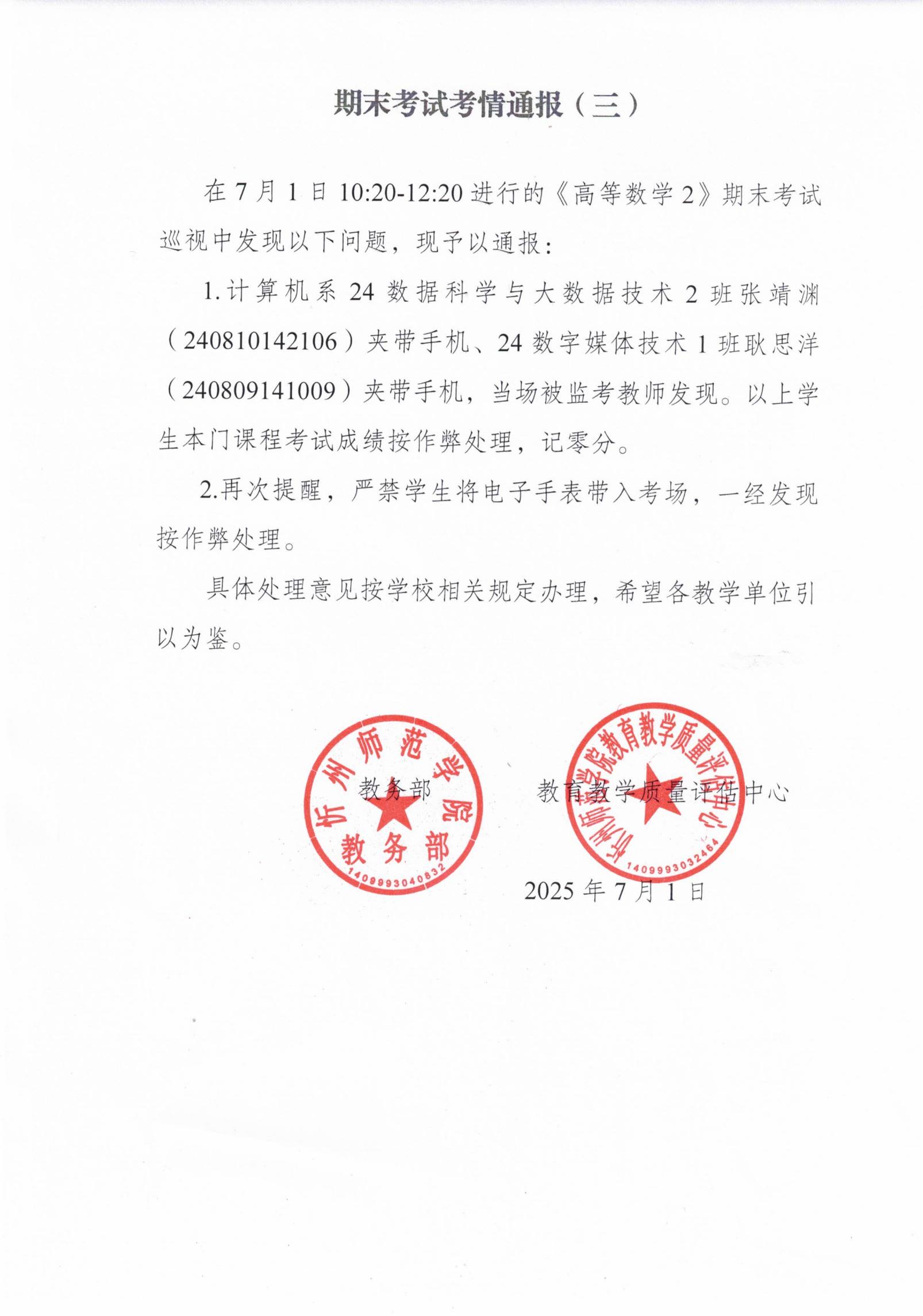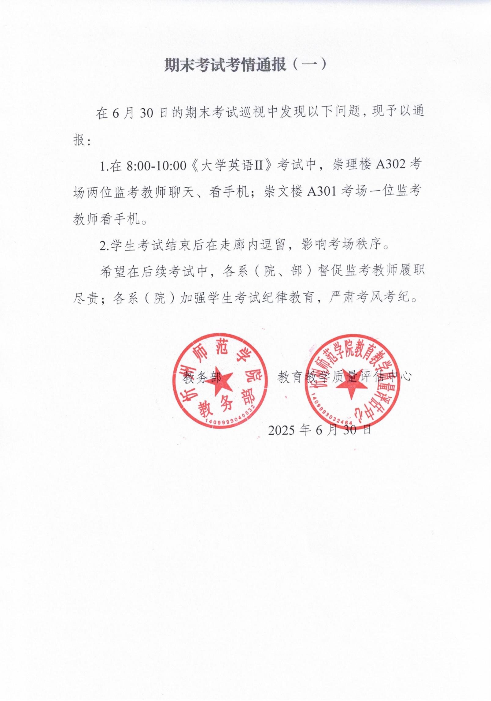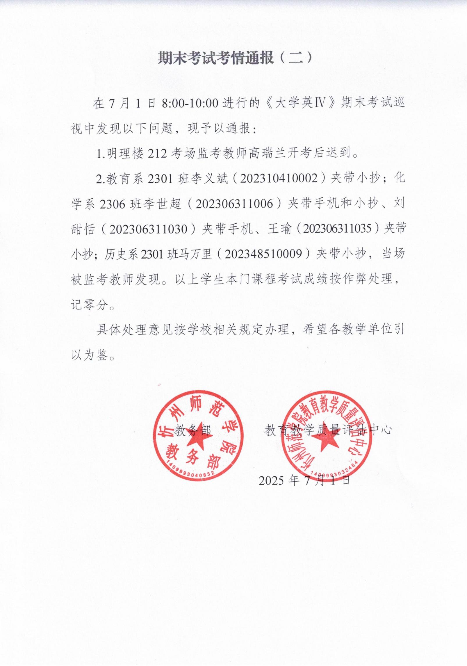 期末考情通报